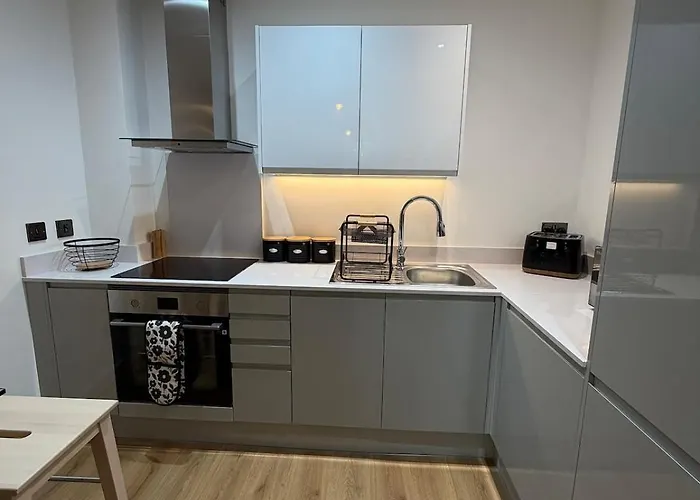 El apartamento Modern Comfort Birmingham City Centre B1 está situado a tan solo 1 km del Edificio Selfridges, y a unos 25 minutos a pie del Odeon Birmingham Broadway Plaza.
